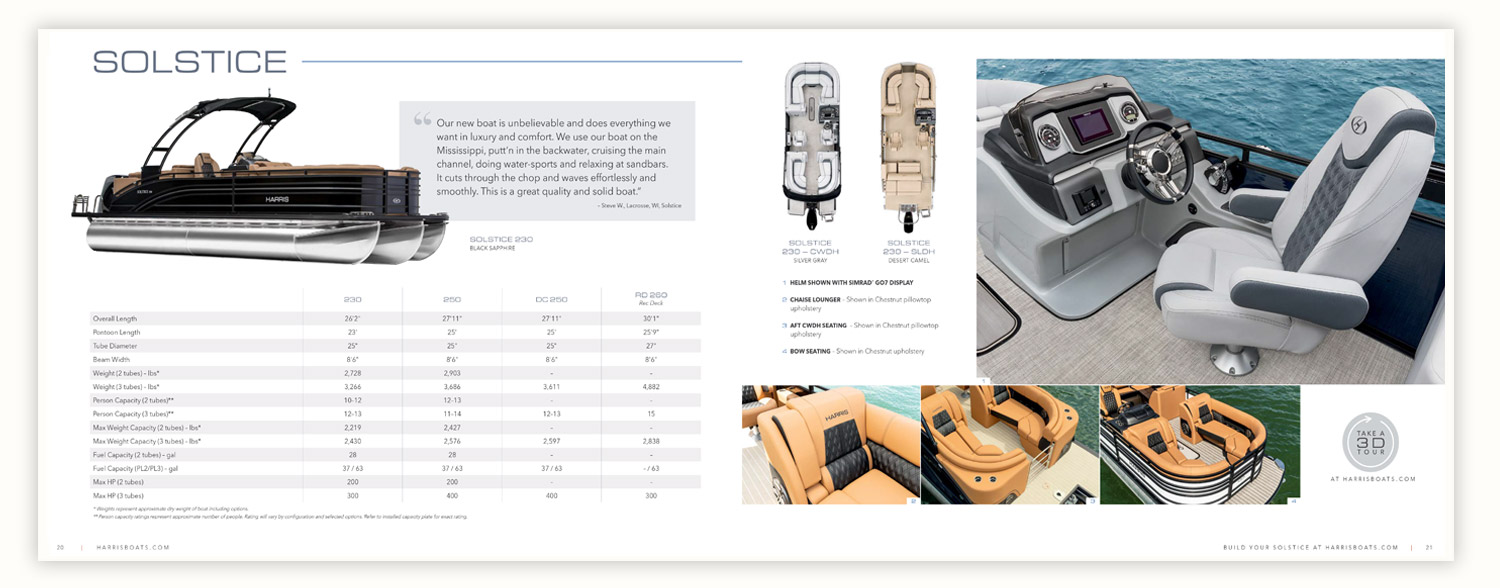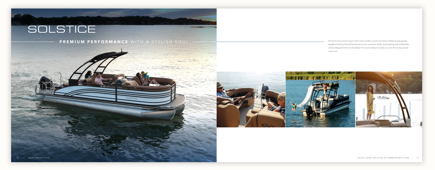 The Harris catalog I designed evolved the brand's style, providing a clear heirarchy of information with a variety of beauty shots, features and lifestyle images.